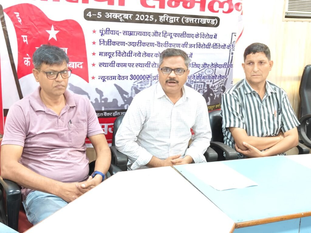 हरिद्वार। इंकलाबी मजदूर केंद्र का सातवां केंद्रीय सम्मेलन 4-5 अक्टूबर को त्रिमूर्ति नगर ज्वालापुर में आयोजित किया जाएगा। प्रैस क्लब में पत्रकारवार्ता के दौरान जानकारी देते हुए इंकलाबी मजदूर केंद्र के महासचिव रोहित रूहेला ने बताया कि दो दिवसीय केंद्रीय सम्मेलन में संगठन के प्रतिनिधि विगत तीन वर्षो में देश […]