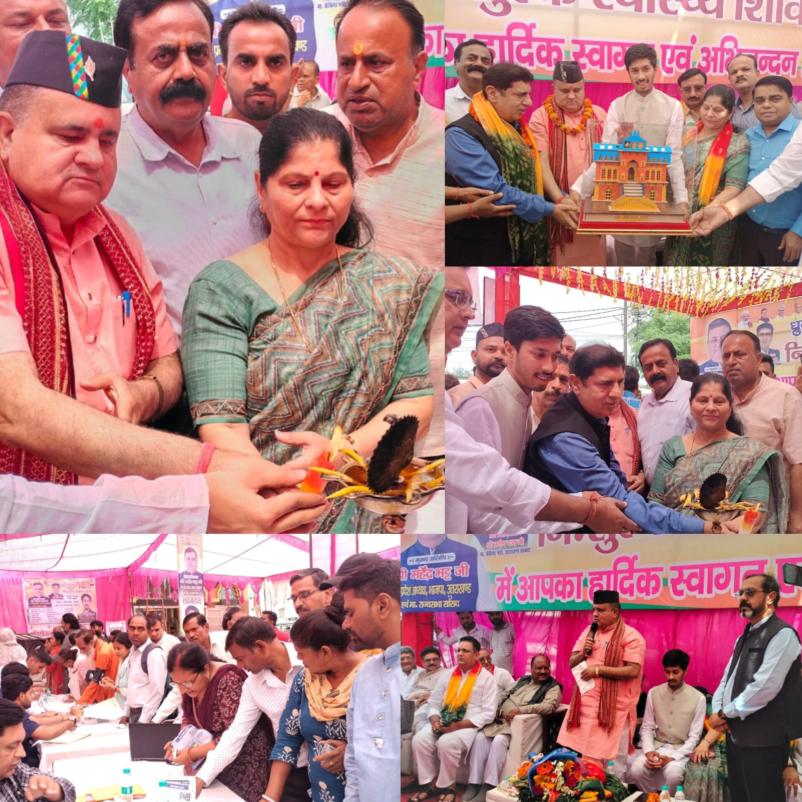 आज दुर्गा चौक स्थित मंदिर परिसर में भाजयुमो जिला उपाध्यक्ष ध्रुव गुप्ता द्वारा निःशुल्क स्वास्थ्य शिविर का आयोजन किया गया। शिविर कार्यक्रम में बतौर मुख्य अतिथि पहुँचे प्रदेश अध्यक्ष महेंद्र भट्ट ने कहा कि यह निःशुल्क शिविर गरीब लोगों की सेवा में मील का पत्थर साबित होगा। उन्होंने कहा कि ध्रुव गुप्ता राजनीति के भी उभरते सितारे है। वह लगातार समाजसेवा के कार्यों में जुटे रहते है। यह सेवा कार्य भाजपा पार्टी का सच्चा कार्यकर्ता ही कर सकता है। वहीं उन्होंने तंज कसते हुए विपक्ष पर निशाना साधा ओर कहा कि अभी तो हरदा ने 15 दिन का मौन रखा है, आगामी चुनाव के बाद कांग्रेस पार्टी को लंबे समय के लिए मोन रखना पड़ेगा। भट्ट ने कहा कि भाजपा की विचारधारा से जुड़े लोगों ने कांग्रेस ज्वाइन नही की, बल्कि भाजपा पार्टी से निष्काषित लोगों को कांग्रेस ने लिया है।